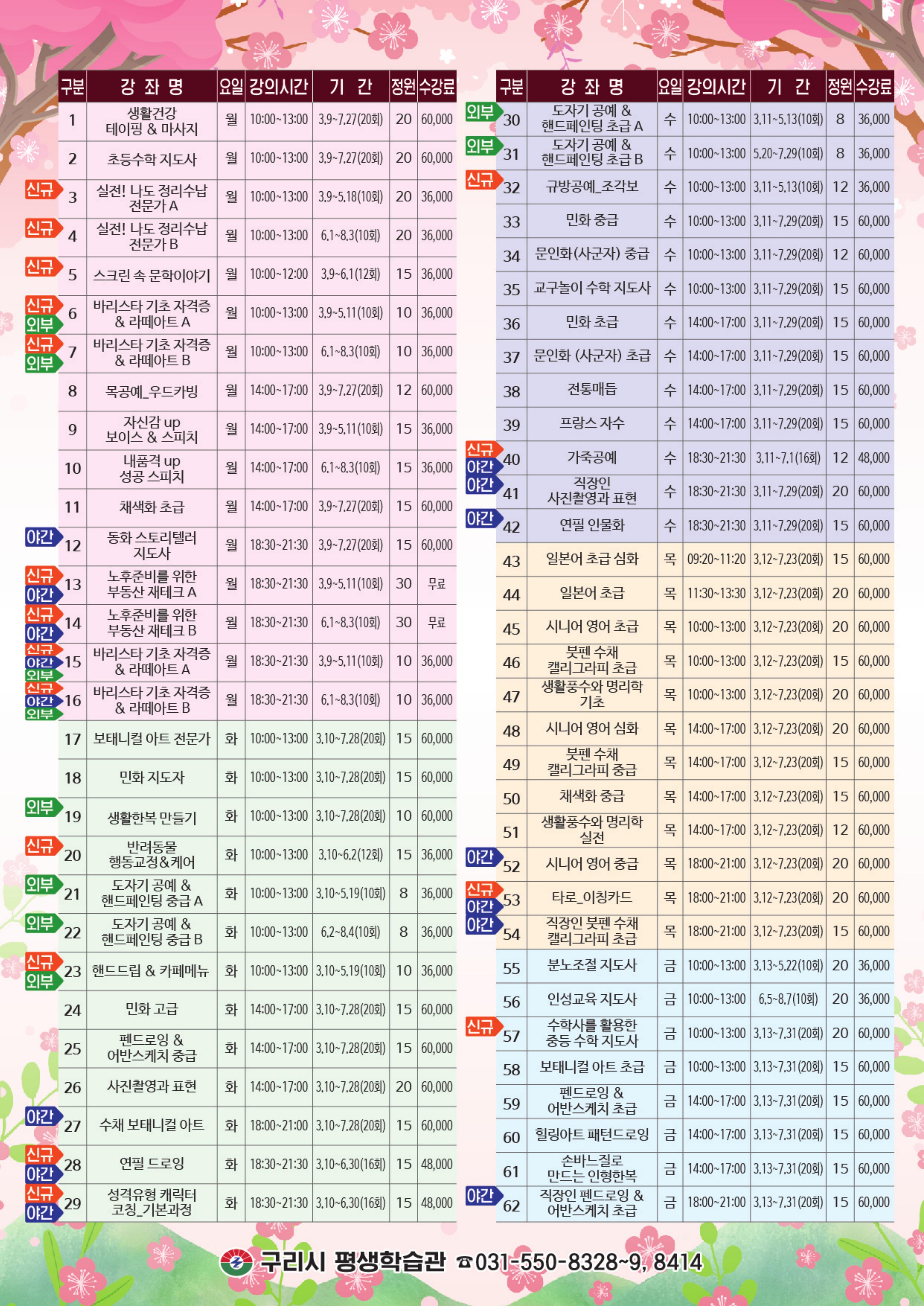 [구리시 평생학습관 모집 안내]