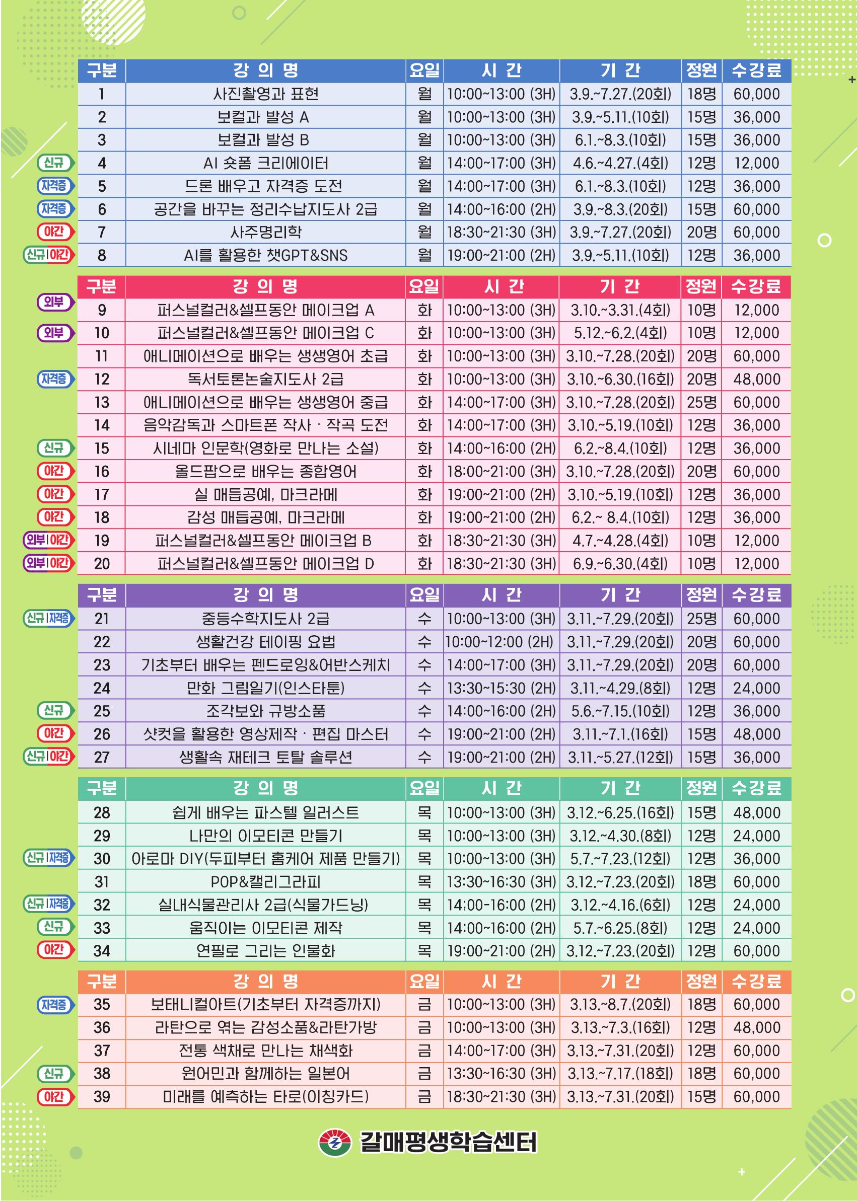 [갈매평생학습관 모집 안내]