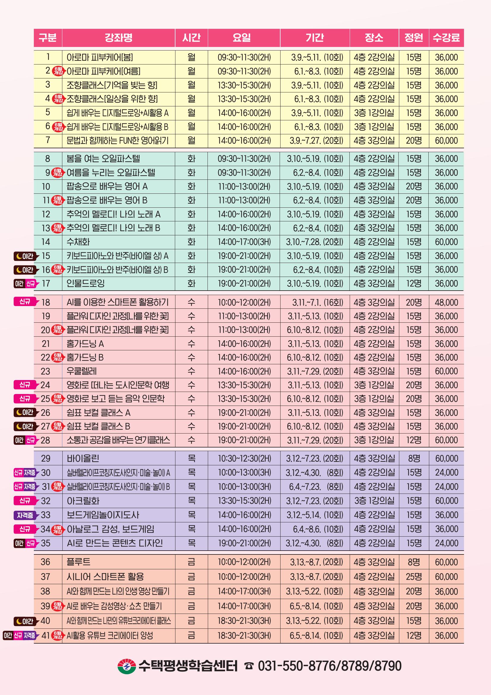 [수택평생학습관 모집 안내]
